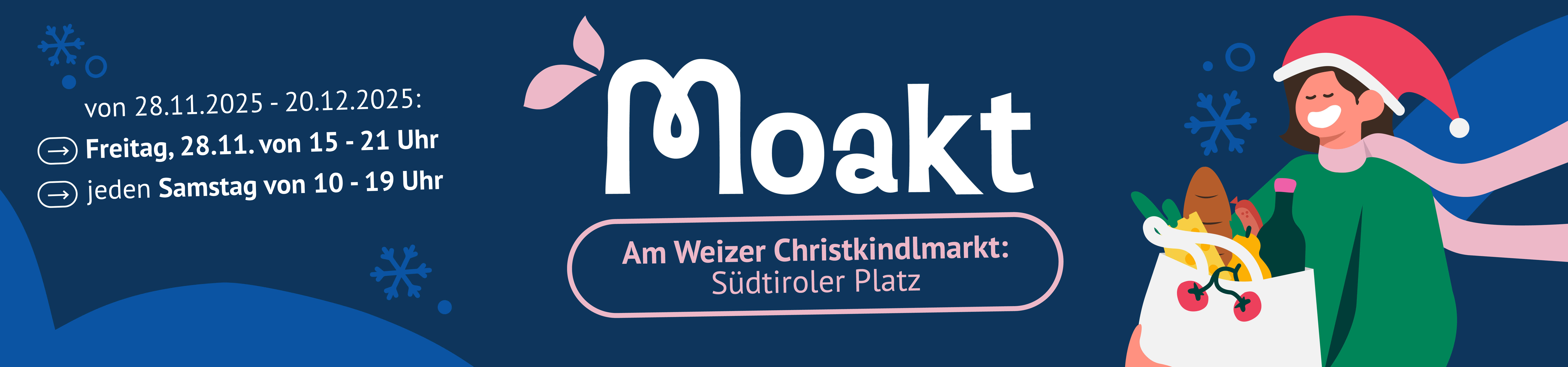 Bei uns kannst du rund 700 regionale Produkte von unseren 50 MoaktBetrieben online bestellen und abholen oder per Hauszustellung im Raum Weiz vor die eigene Haustür liefern lassen. Gerne kannst du auch direkt in unserem MoaktLaden (Florianigasse 5, 8160 Weiz, täglich von 5 - 23 Uhr geöffnet) bzw. bei unserem MoaktBus (bei Veranstaltungen unterwegs) einkaufen. Wir freuen uns, wenn du mit deinem Einkauf beim Moakt unsere regionalen Landwirt:innen und Organisationen stärkst! 😊