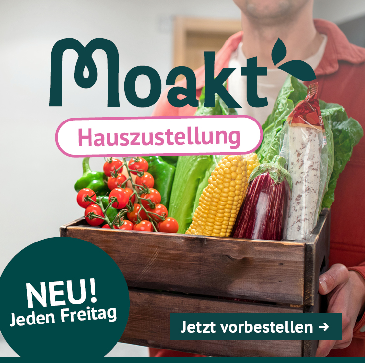 Seit November 2024 bieten wir euch Hauszustellungen im Raum Weiz an! Bestellt dazu einfach aus unserem regionalen Sortiment (www.moakt.at/shop) und wählt dann bei der Kasse als Abhol-/Zustellart Hauszustellung. Als Zahlungsart könnt ihr entweder Barzahlung bei der Hauszustellung wählen oder bereits vorab mit Kreditkarte, Sofortüberweisung, Paypal usw. bezahlen.